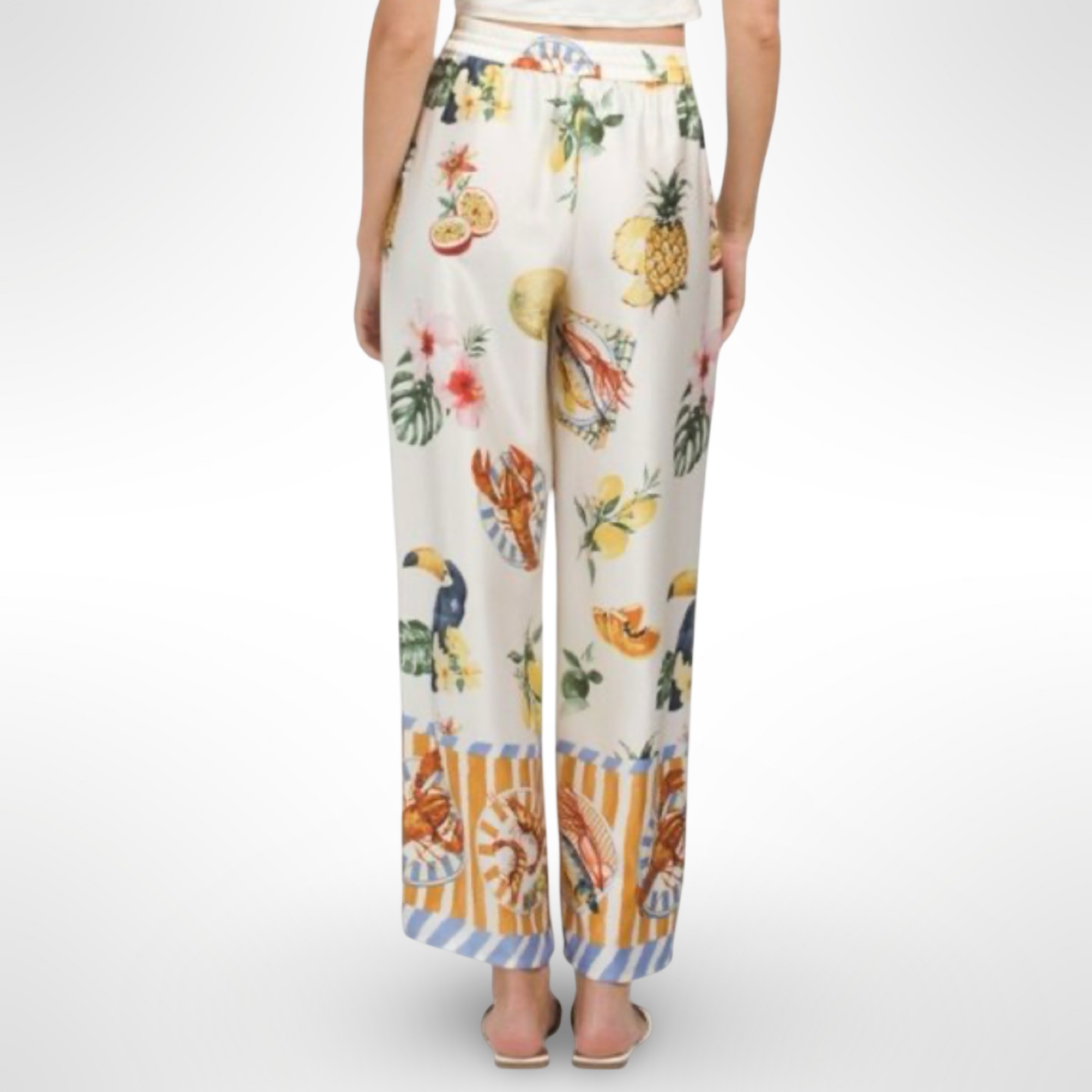 These wide leg pants bring the pizazz to the party with this shrimp picnic themed whimsical print. NWT.