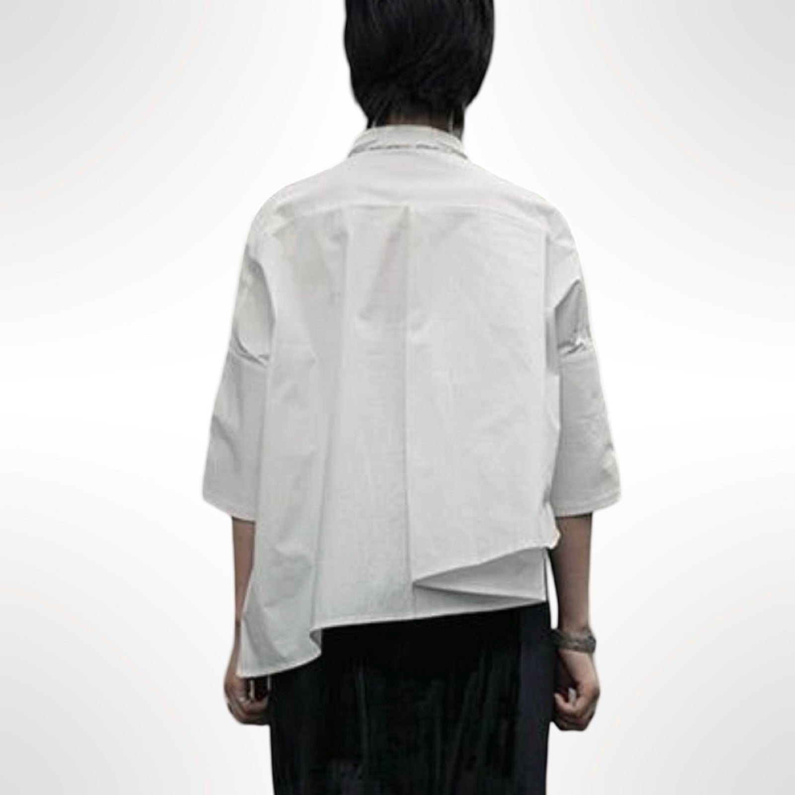 Not your average white button up, this edgy asymmetrical shirt features details that give it personality, offering a modern silhouette that works effortlessly from office to weekend.