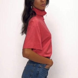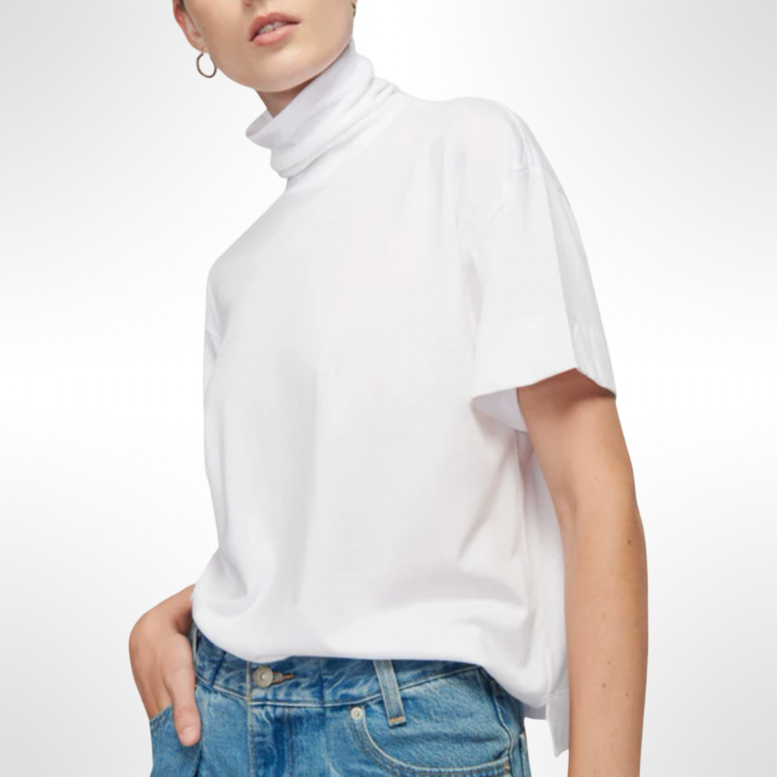 Your go-to turtleneck met your every day oversized tee. The result? A new, chic essential. A relaxed, straight fit with a dropped shoulder and an easy, boxy silhouette. Available in brick or white.