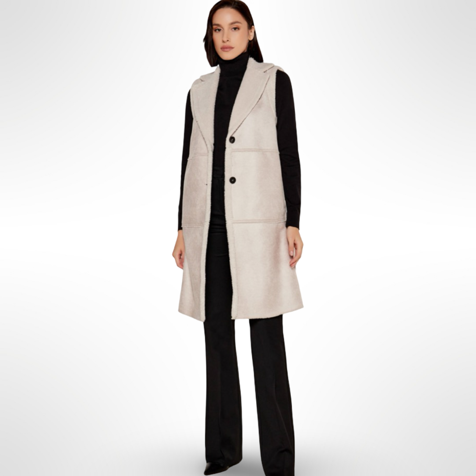 This soft vegan shearling vest makes a sophisticated layering piece. NWT.