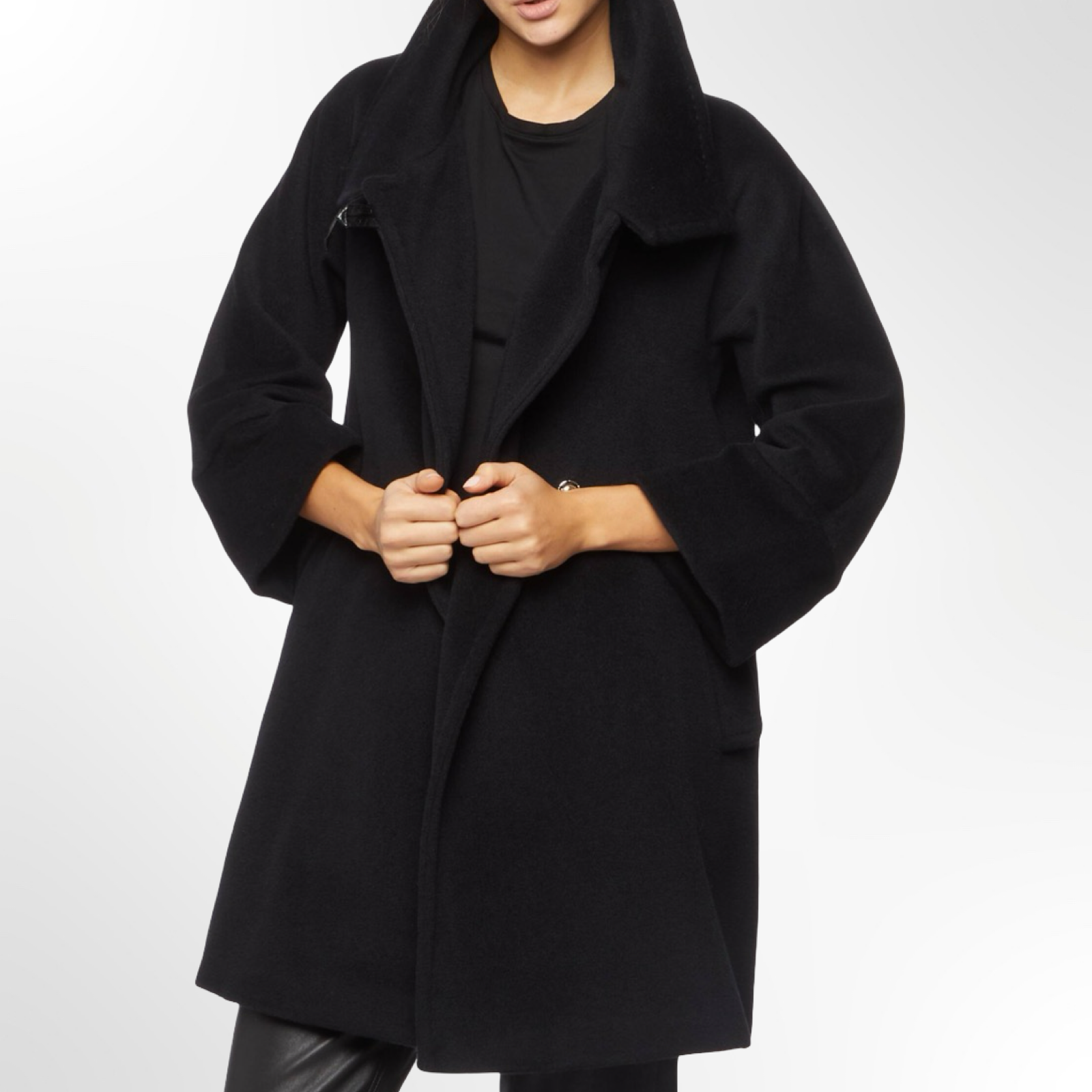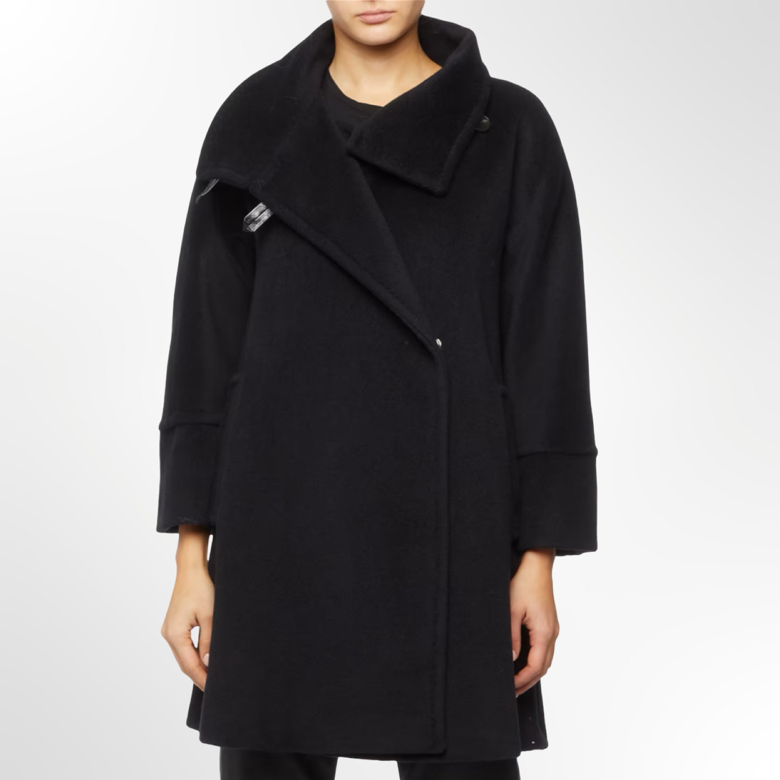 Embrace chilly days with the Marella Lispia Coat. This black wool peacoat features a snap close and a stylish buttoned shawl collar, for a classic silhouette that keeps you warm in style.