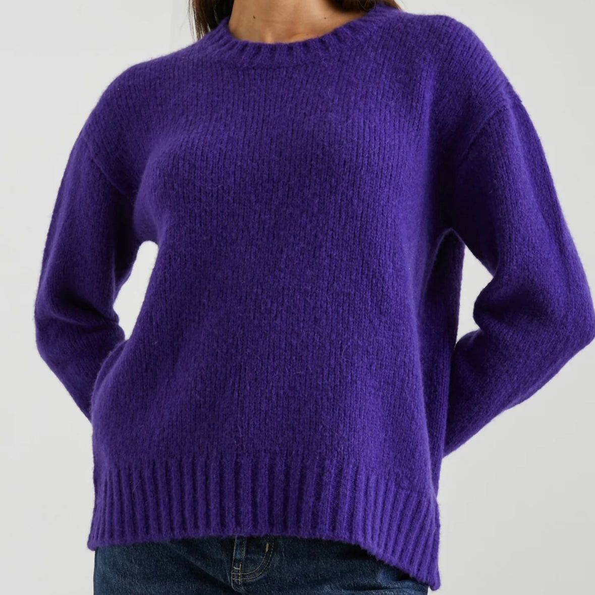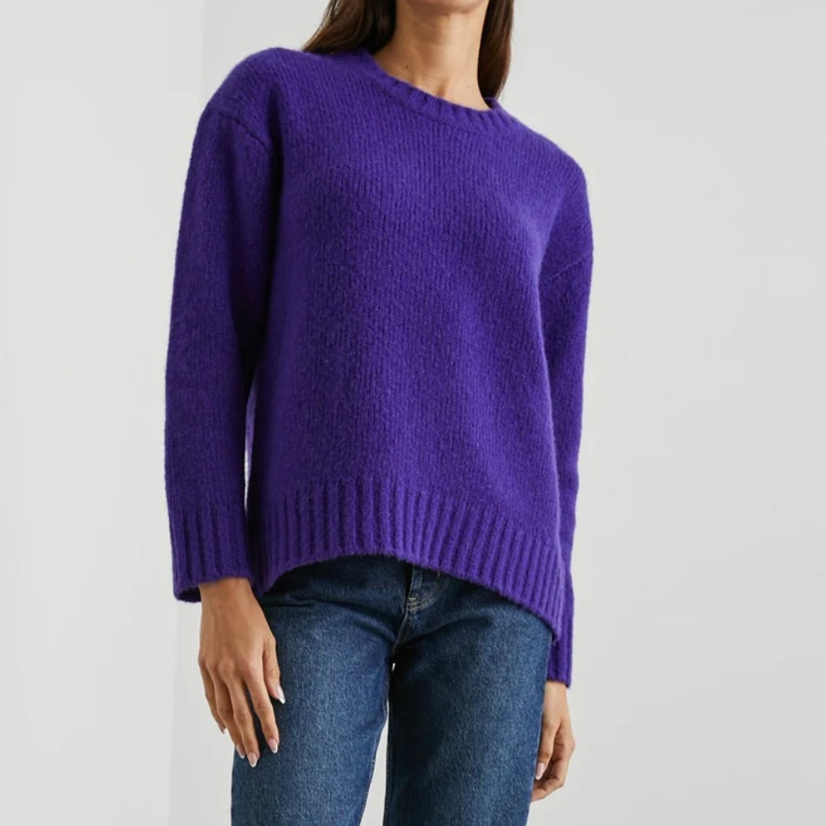Look good, feel grape in this cozy oversized pullover sweater in a soft wool blend.