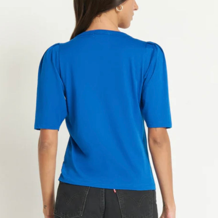 The Nahal Top is where low-impact organic Pima Cotton meets impactful style. This breathable basic has a statement shoulder, puff sleeves, and eye-catching snaps along the henley neckline.