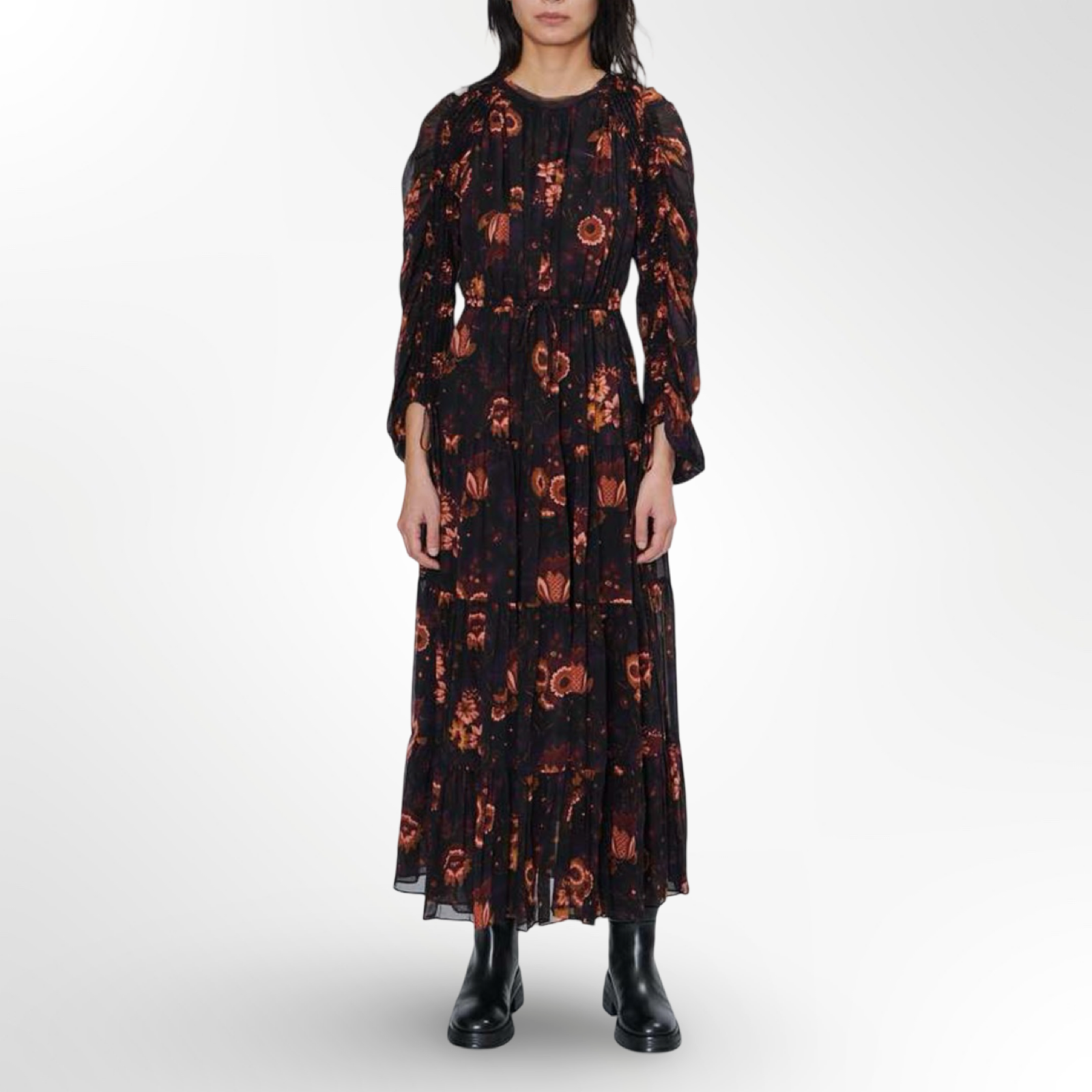 Giving all the fall feels in this rust floral print maxi woth ruched sleeve details and drawstring waist. NWT.