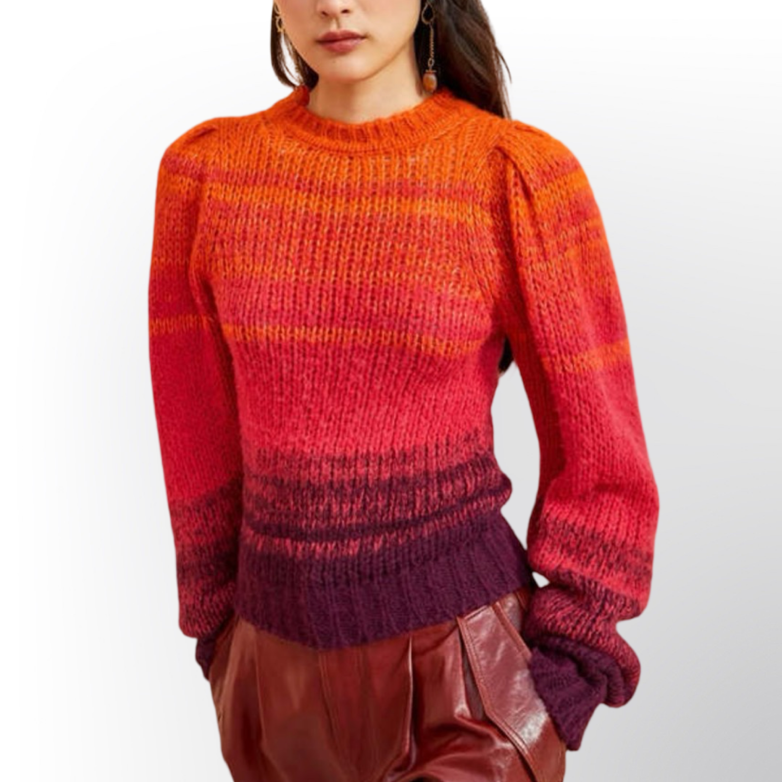 Sunset ombre tones are sure to keep you stylish and cozy with this puff sleeve alpaca blend pullover.